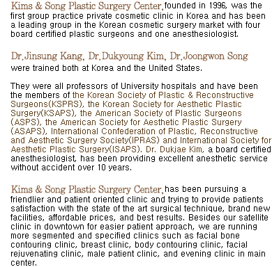 º´¿ø¼Ò°³£ü°³ÀÎÁ¤º¸º¸È£Á¤Ã¥ £üÀÌ¿ë¾à°ü »óÈ£¸í : ±è&¼Û ¼ºÇü¿Ü°ú / ÁÖ¼Ò : ´ë±¸±¤¿ª½Ã Áß±¸ »ï´ö1°¡ 8-1 / TEL : 053-426-5151, 423-3368 / FAX : 053-423-0562 Copyright 2003-2007 Kims&Song Aesthetic Plastic Surgery center. All Rights reserved. |
